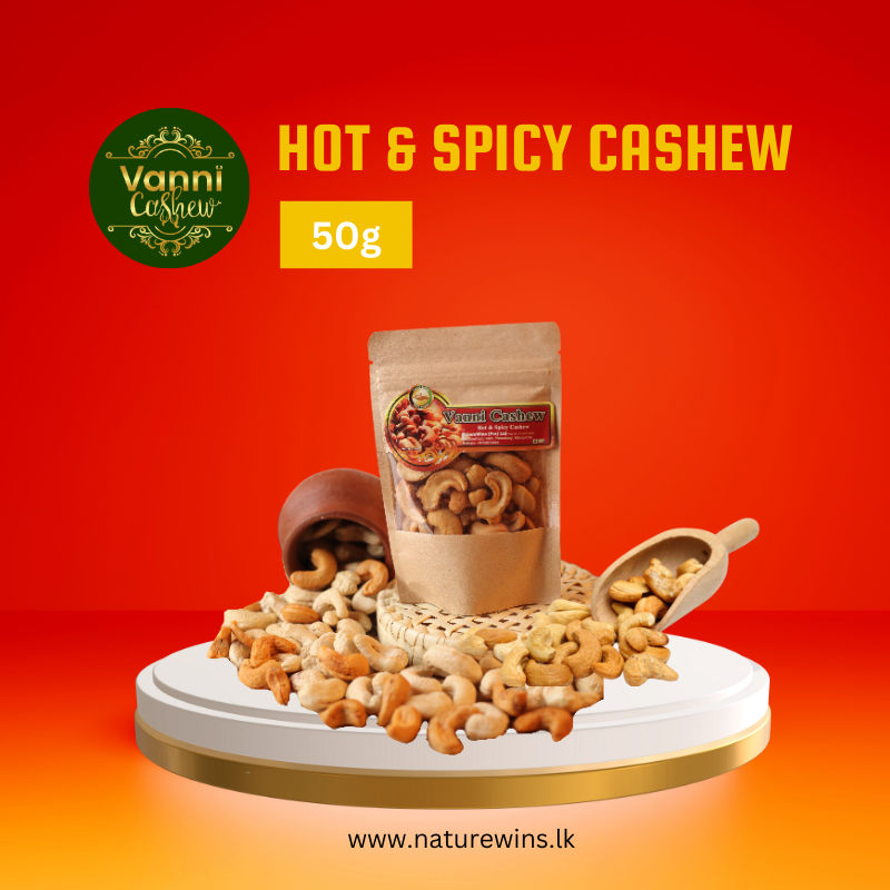 Enjoy the bold, fiery flavor of our Hot & Spicy Vanni Cashews. Packed in a 50g zip-lock bag for freshness and convenient snacking anytime.